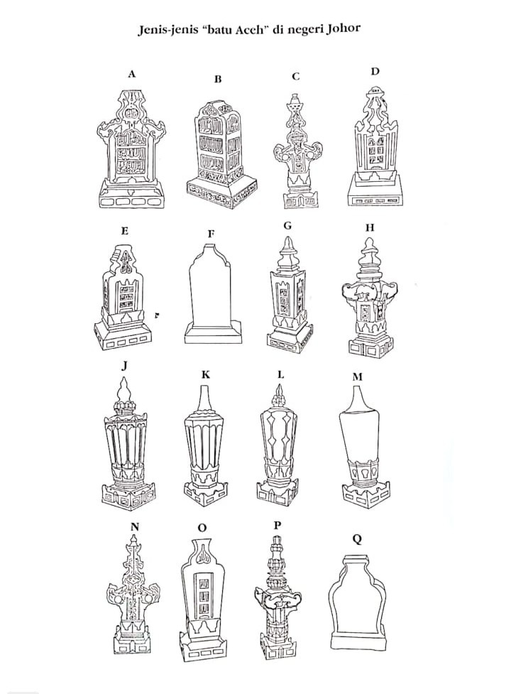 Yatim juga mengidentifikasi 14 subtipe nisan Aceh yang dapat dikenali. Penelitian ini secara spesifik berfokus pada tipe F, yang secara umum beredar antara tahun 1500 dan 1550, bertepatan dengan masa perlawanan terhadap Portugis. Inskripsi Syahadat juga sering ditemukan pada nisan-nisan ini, menegaskan keimanan Islam dan berfungsi sebagai pengingat akan keesaan Allah (Tauhid).